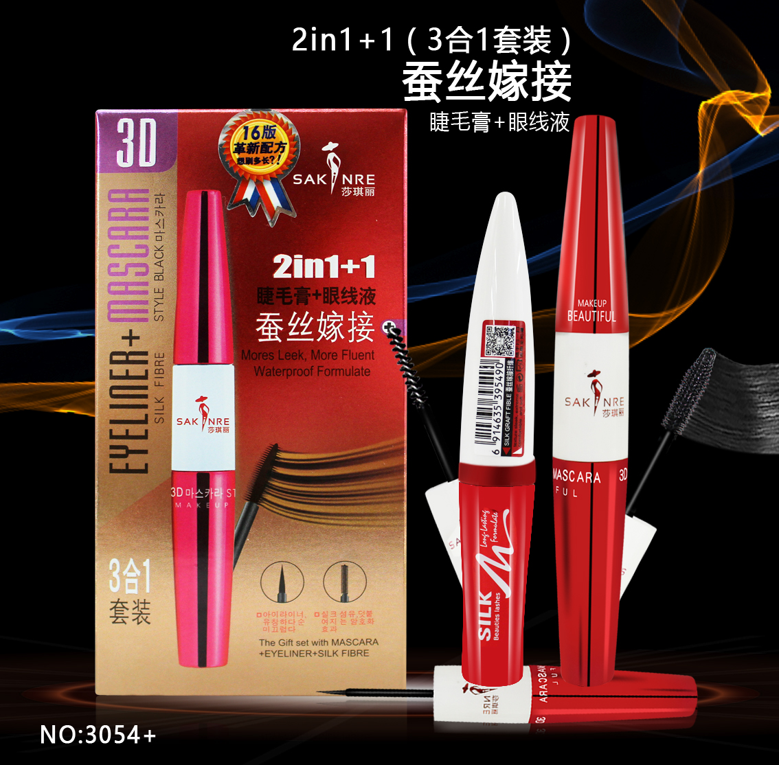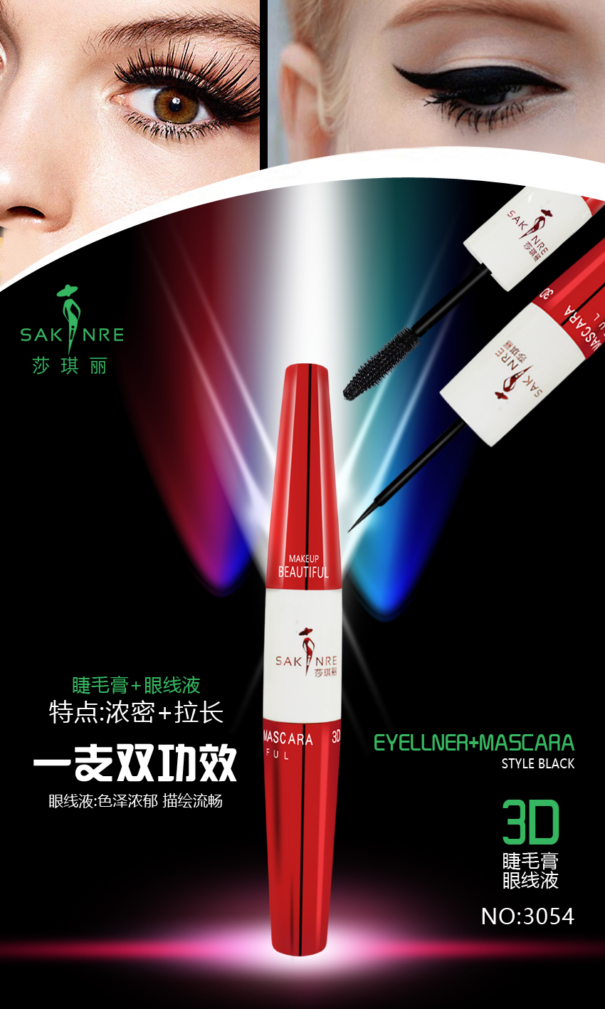 莎琪丽睫毛膏+眼线液+蚕丝纤维3054+
